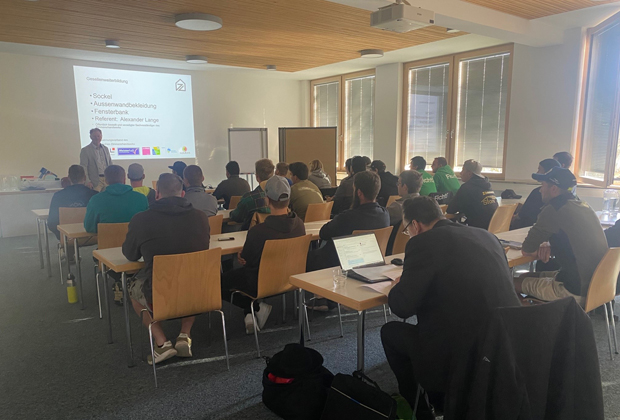 Der Sachverständige Alexander Lange referierte mit vielen Praxisbeispielen über Außenwandbekleidungen, Fensteranschluss und Sockelabdichtung.