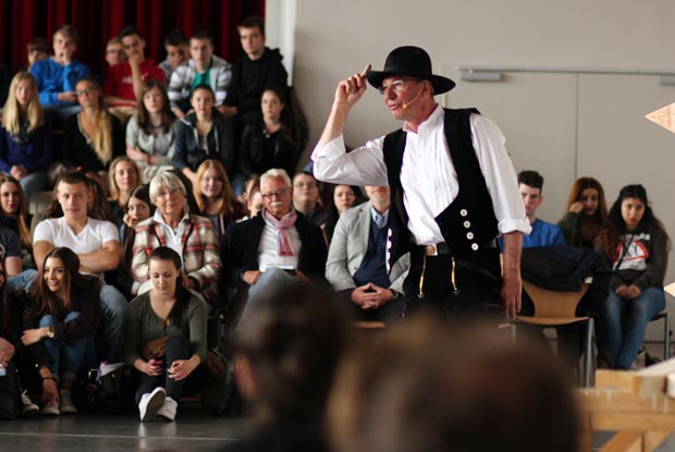 Mit großem Bedauern müssen wir mitteilen, dass wir unsere Theatertour 2020 mit Richard Betz endgültig absagen müssen. Die derzeit immer noch angespannte Corona-Lage, insbesondere an den Schulen, lässt keine andere Handlungsoption zu. Es ist jedoch bereits mit Richard Betz vereinbart, dass wir für 2021 erneut eine Tour mit ihm vorbereiten werden.